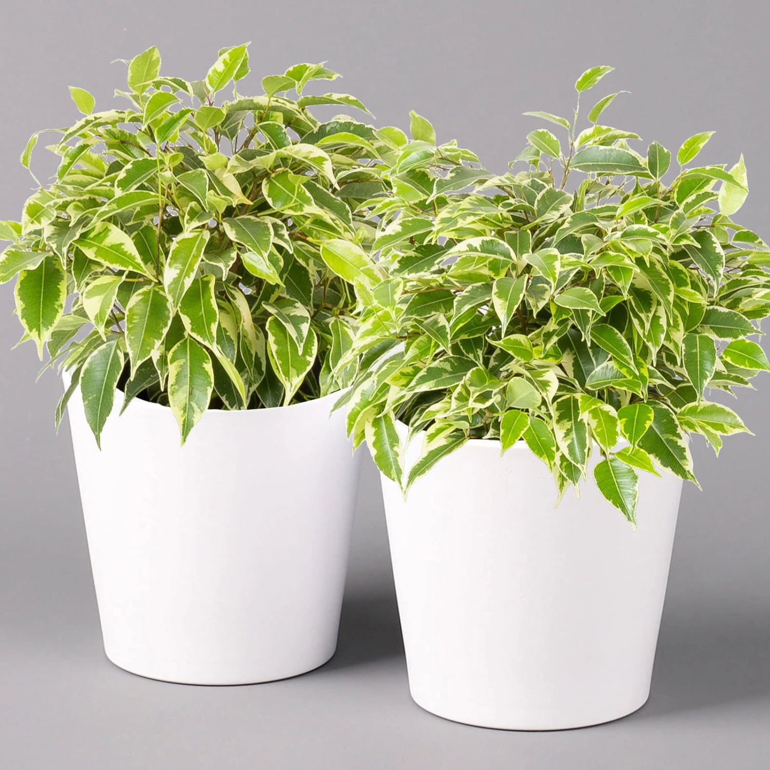 Birkenfeige ‚Kinky‘ In Keramiktopf Weiß, Topf-Ø 12 Cm, Höhe Ca. 25 Cm, 2er-Set