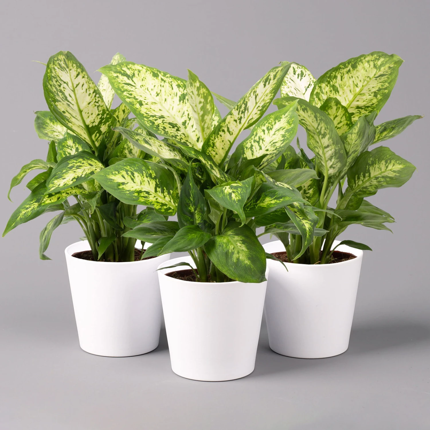 Dieffenbachie ‚Compacta‘ Mit Keramiktopf Dallas Weiß, Topf-Ø12cm, 3er-Set