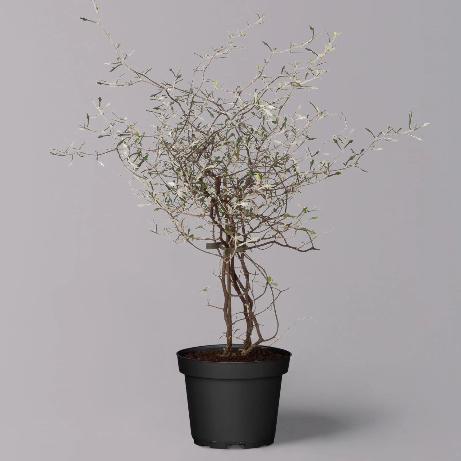 Der Zickzackstrauch (Corokia cotoneaster) mit seinem kleinen oval bis eiförmigen Blättern begeistert mit seinem filigranen Wuchs. Die immergrünen bzw. silbernen Blätter bleiben über das gesamte Jahr an der Pflanze erhalten. Der Wuchs dieser Zimmer- oder Kübelpflanze ist aufrecht pyramidal, die Äste und Triebe haben einen bizarren zickzackförmigen Wuchs. Die Pflanze erreicht eine Höhe von bis zu 2 Metern.